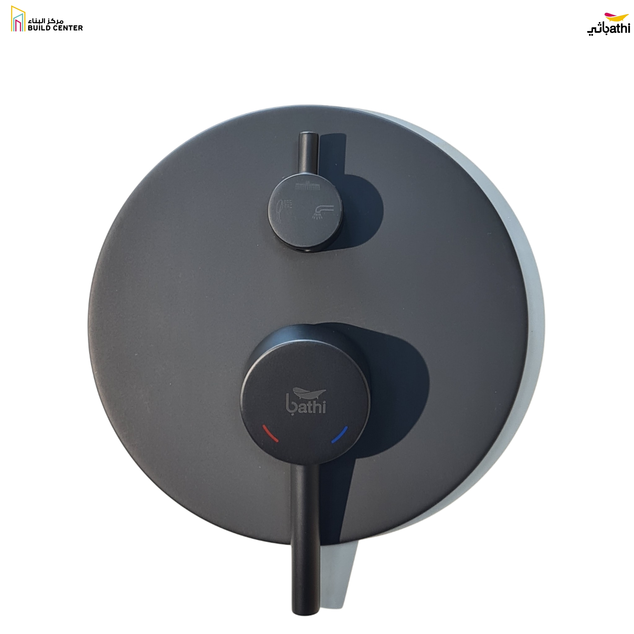 M Round Black Brass Concealed Mixer هو خلاط مخفي بتصميم دائري، مصنوع من النحاس مع تشطيب أسود غير لامع.