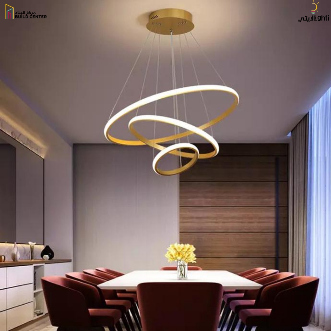 - التعليق المعلق يجعل هذا المصباح مثاليًا لإضاءة المساحات بشكل مركزي، ويُعتبر خيارًا رائعًا لغرف المعيشة، غرف الطعام، المكاتب، وغيرها.