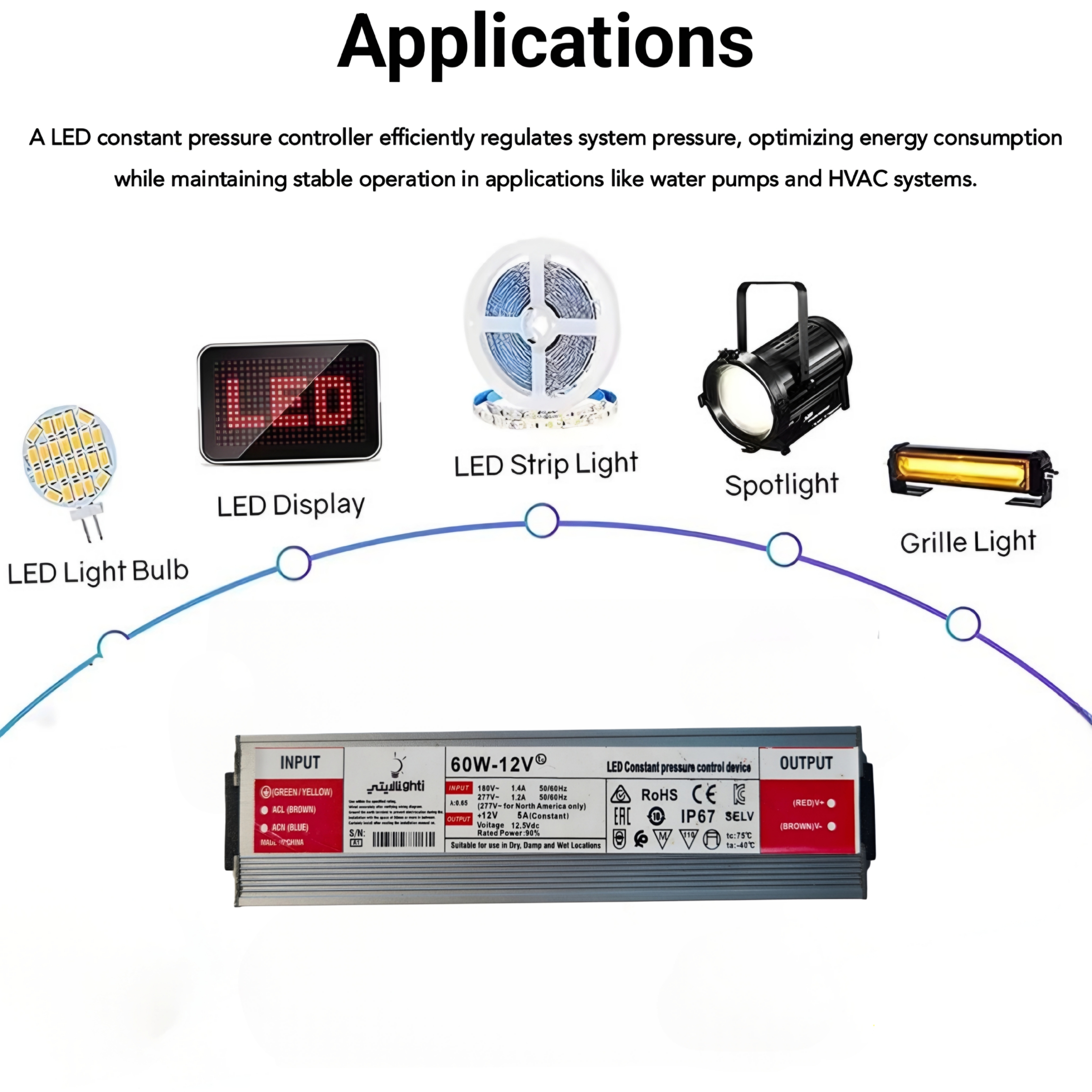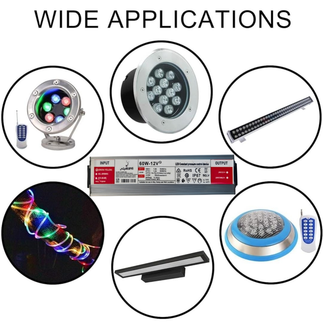 - الإضاءة الخارجية: مناسب لأنظمة الإضاءة الخارجية مثل إضاءة الحدائق، الأسطح، أو المسابح.